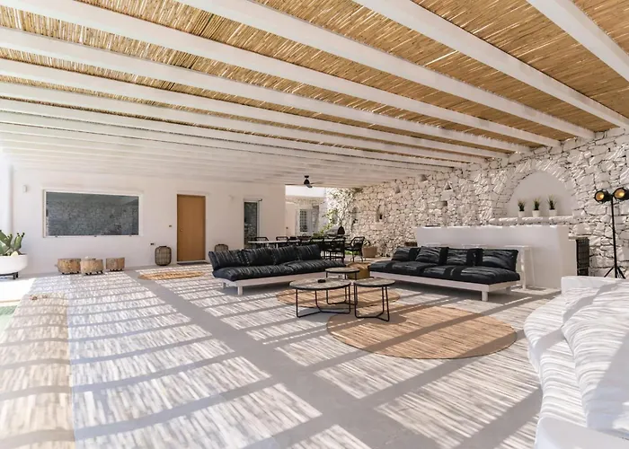 När du bor i den här villan befinner du dig ungefär 10 minuter med bil från Mykonos gamla hamn och ungefär 15 minuter med bil från Paleokastro kloster.